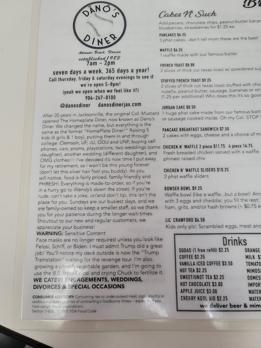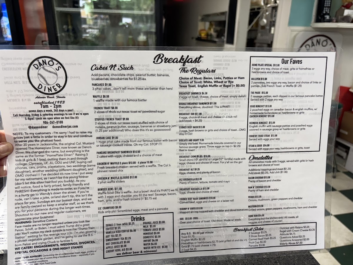 Welcome to Dano's Diner, a beloved culinary gem located at 1487 Mayport Rd, Atlantic Beach, FL. This diner combines comfort with quality, embodying the essence of classic American dining. Dano's menu features a standout selection that caters to all appetites.